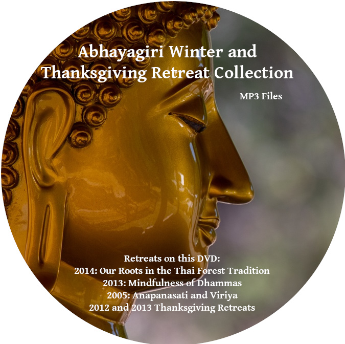 This mp3 DVD contains readings by the Abhayagiri Community from twenty-five different Thai Forest teachers with reflections and commentary by Ajahn Pasanno in response to the community’s questions. The DVD also includes the contents of six previously released mp3 CDs: the 2013 Winter Retreat, the 2012 and 2013 Thanksgiving/Monastic Retreats, the 2008 Metta Retreat, and Ānāpānasati and Viriya from the 2005 Winter Retreat. The DVD contents are also available online (opens in new tab).