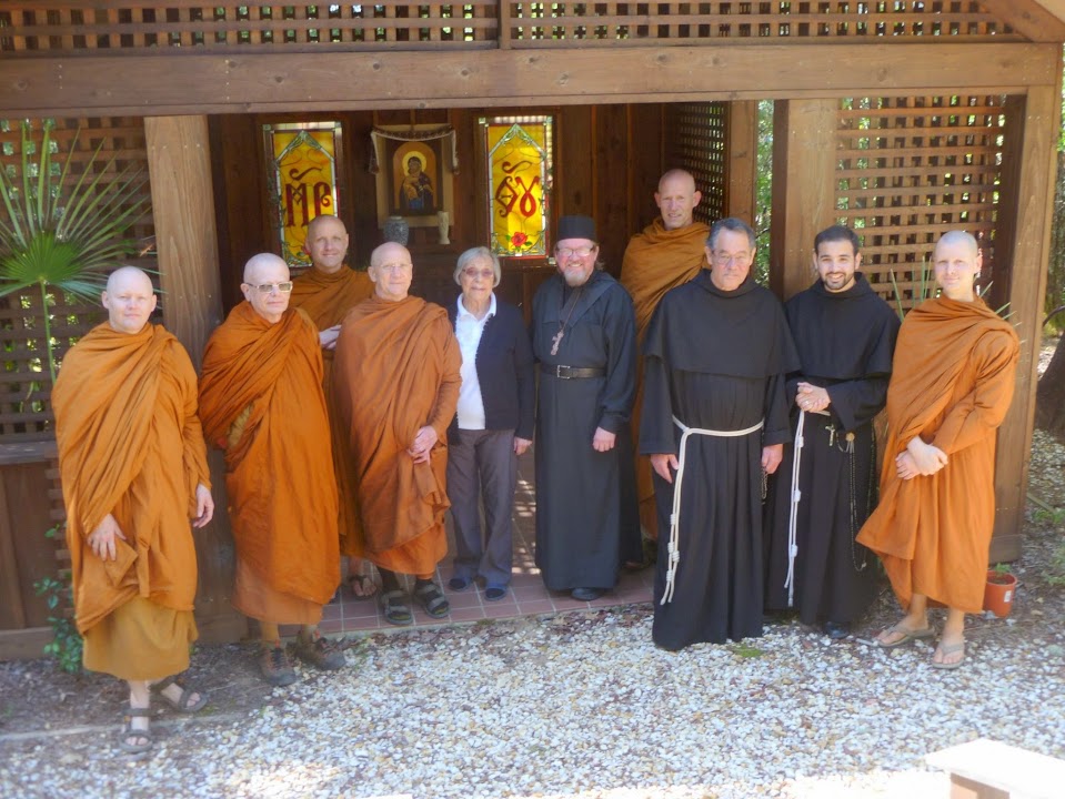 On 15 April, Luang Por Pasanno and a small contingent of monks and lay supporters went to visit our nearby neighbors, the community of monks at the Holy Transfiguration Monastery, also known simply as Mt. Tabor.
