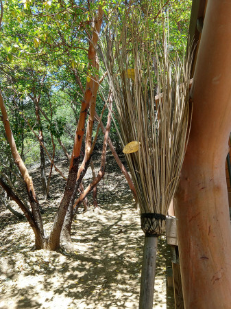 ช่วงกวาดทางเดินในป่า เราก็สามารถสังเกตเห็นใบไม้จากหลากหลายพืชพันธุ์ ใบของต้นมาโดรน่าค่อนข้างใหญ่และหนานิด ทำให้กวาดได้ง่ายกว่าใบบางจากต้นโอ้คส์ เมื่อกล่าวถึงต้นโอ้คส์นั้นที่วัดเรานับได้กว่า 12 สายพันธุ์ ซึ่งรวมถึงประเภทใบมีขอบแหลมคล้ายกับหนาม เช่นพันธุ์แทนโอ้คส์ เมื่อเรากวาดใบแหลมๆ นี้ออกจากทางเดินก็จะมีพระสงฆ์ที่นึกขอบคุณที่ไม่เจ็บเท้าเหมือนเมื่อยามเหยียบใบแหลมๆ เวลาเดินเท้าเปล่า